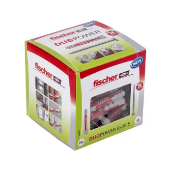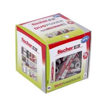 Fischer DUOPOWER, üç ürün işlevine sahip akıllı 2 bileşenli bir tapadır. Akıllı evrensel tapa, tüm yapı malzemelerine sabitleme için uygundur. Bu da, tek bir tapayla çeşitli uygulamalara izin verir. fischer DUOPOWER kendini otomatik olarak yapı malzemesine göre ayarlar ve katlama, genişletme ve düğümlemenin üç ürün fonksiyonu aracılığıyla en yüksek yükleri aktarır. Vidayı sıkarken tapadan gelen çok iyi geri bildirim ekstra güvenlik sağlar. fischer DUOPOWER 6 x 50, 8 x 65 ve 10 x 80, daha büyük gömme derinliği nedeniyle, içi boş yapı malzemeleri, gazbeton ve köprü sıvaları için özellikle uygundur.